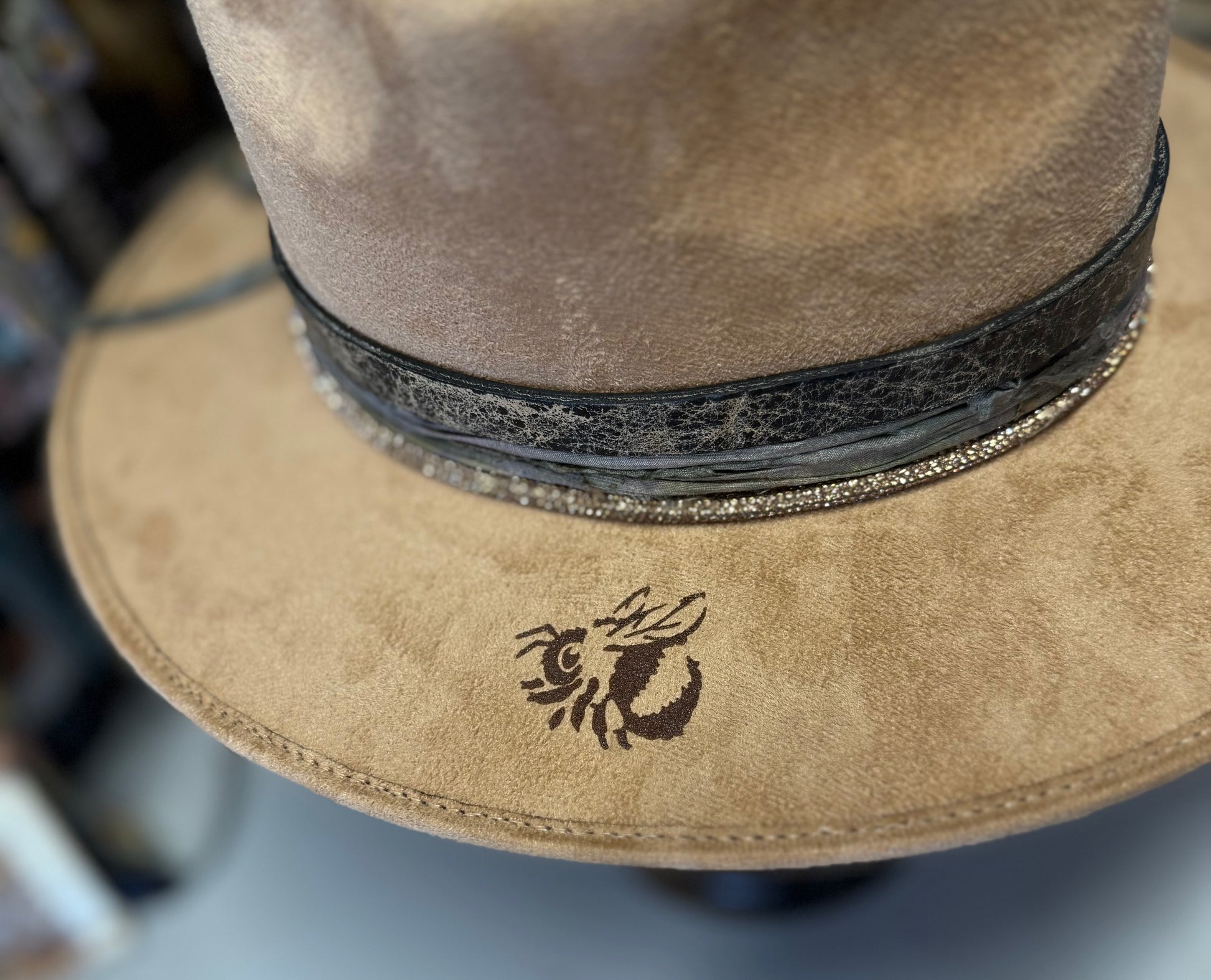 Detailed designs like flowers blooming across the brim. A tiny bee tucked into the band or anything else close to your heart.